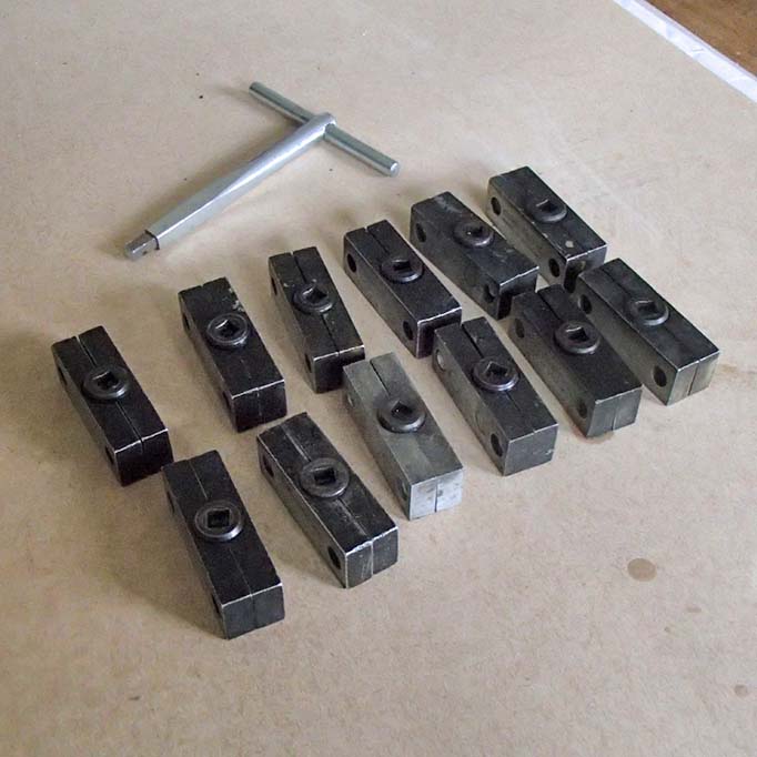 Twelve lightweight standard locking up quoins… 12 pica ems x 4 pica ems (expand to 5 pica ems). Lots available.
